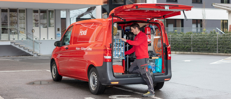 Besonders schätzt er den 24/7 Kundendienst. Mögliche Störungen werden sofort von einem Hoval Techniker behoben – rund um die Uhr.