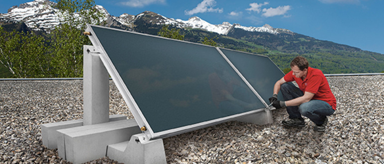 - Bild: Hoval Solarkollektor Ultrasol 2 - Flachdach Betonsockel mit Techniker (2) (JPEG)