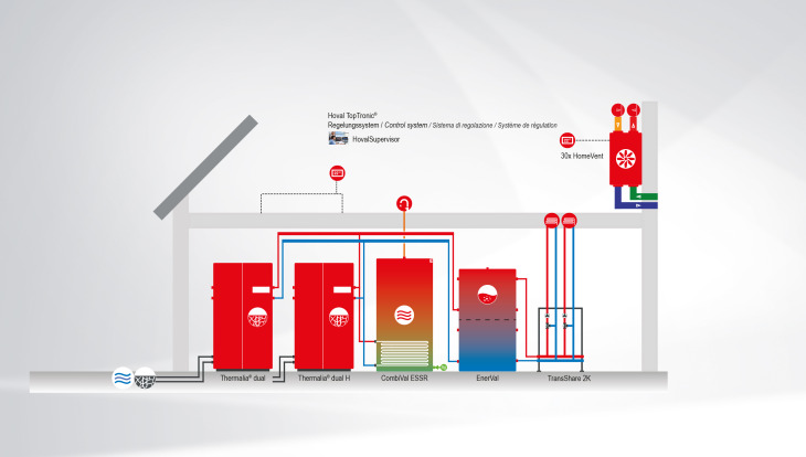 Wie viel Energie verbraucht die Heizungsanlage pro Tag, pro Woche, pro Monat, pro Jahr? Die Regelungs- und Leittechnik HovalSupervisor hat sämtliche Komponenten des Systems im Griff und zeigt alles auf. Die Daten lassen sich auch per Fernzugriff abfragen.