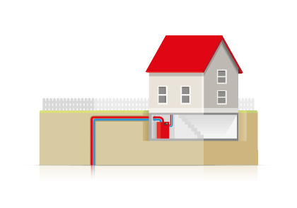 Die Erdwärmepumpe zieht die benötigte Energie direkt aus dem Erdreich – ein konstanter Wärmespeicher, unabhängig von der Tages- oder Jahreszeit. Erdwärmepumpen eignen sich am besten für Neubauten, da sie umfangreiche Baumaßnahmen am Grundstück erfordern. Unterschieden wird zwischen vertikalen Erdwärmesonden, die zwischen 100 und 300 m tief installiert werden, sowie bodennah verlegten Flächenkollektoren. Beide bestehen aus einem System von Rohren, durch die eine Sole aus Wasser und Frostschutzmittel gepumpt wird. Flächenkollektoren sind mit großflächigen Erdarbeiten und Einschränkungen in der Gestaltung des Außenbereichs verbunden. Für die Tiefenbohrung ist zum Teil eine behördliche Genehmigung notwendig.