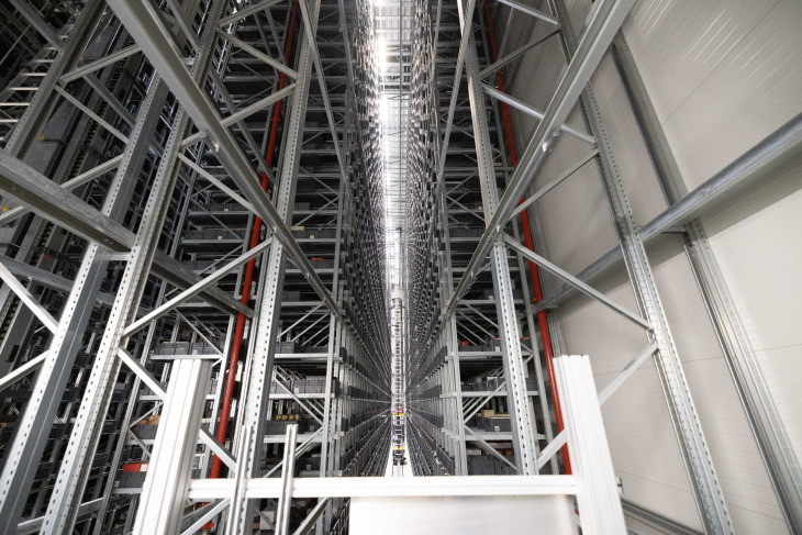 Um auch außerhalb des Automatiklagers den verschiedenen Anforderungen – sei es an die Temperaturen oder Betriebszeiten – gerecht zu werden, ist die Fläche in sechs Regelzonen unterteilt. Beheizt werden diese von 22 bedarfsgerecht einstellbaren TopVent TH-Geräten in Kombination mit dem Gas-Brennwertkessel UltraGas von Hoval. „Die Hallenklimageräte und der Gas-Brennwertkessel sind aufeinander abgestimmt und laufen mit einer sehr niedrigen Systemtemperatur, was die Effizienz der Heizung zusätzlich erhöht“, erklärt Steinhäusler.