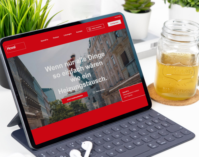 Heizungssanierer kommen auf die Website quickfix.hoval.at und konfigurieren dort auf Basis einfacher Fragen ihre Wunschheizung.