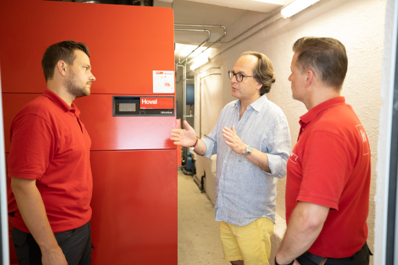 Auf Empfehlung unseres Haustechnikers von der Matousch GmbH haben wir uns für die Integration einer Hoval UltraGas Heizung und für das Hallenklimasystem TopVent entschieden.
