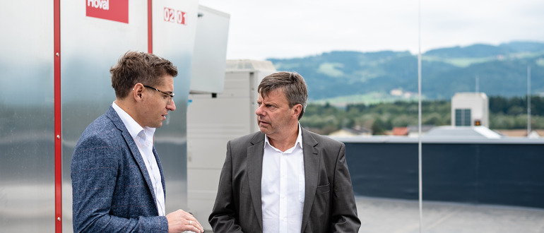 - Bild: Christoph Steinhäusler, Leiter Produktmarktmanagement Klimatechnik bei Hoval im Gespräch mit Alfred Krobath, Geschäftsführer der PMS Elektro- und Automationstechnik GmbH (JPEG)