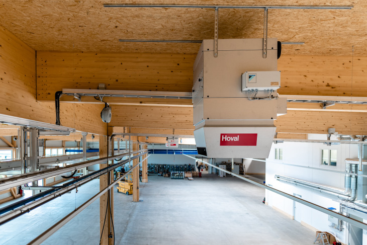 Seit rund 15 Jahren bietet PMS nationalen und internationalen Kunden Lösungen im Bereich Elektro- und Automationstechnik. In den letzten Jahren ist das Unternehmen mit Sitz in St. Stefan im Lavanttal stark gewachsen. Im Zuge des Baus der 8.500 Quadratmeter großen neuen Fertigungsanlage wählte PMS eine modulare Hallenklima-Lösung von Hoval. Dort sind seit September 2019 zwei RoofVent und zwölf TopVent Geräte in Kombination mit je einer Wärmepumpe im Einsatz. Sie vereinen alle drei Anforderungen in einem System – Heizung, Kühlung sowie Be- und Entlüftung.