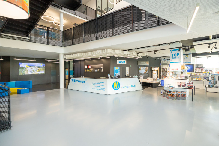 „Der Zusammenschluss mehrerer Wärmepumpen wie bei Mediashop ist besonders für hohen Wärme- oder Kühlbedarf geeignet“, erklärt Hoval Projektleiter René Zobl und ergänzt: „Ein großer Vorteil ist, dass die Wärmepumpen im Team arbeiten – das resultiert in gesteigerter Betriebssicherheit.“ Herzstück der Kaskade ist die intuitive TopTronic Regelung, die es ermöglicht, Temperaturen je nach räumlichen Gegebenheiten anzupassen. Abgesehen von einer Fußbodenheizung im Erdgeschoß befinden sich im restlichen Gebäude innovative Heiz- und Kühldecken.