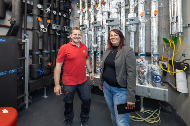 , erklärt Hanisch-Horvath, für die auch der nachhaltige Betrieb der Anlage wichtig ist. So sorgt eine am Dach montierte Photovoltaikanlage für die Stromversorgung der Wärmepumpe. Die integrierte „Smart Grid Ready“-Funktion hilft dabei, Kosten zu sparen: Über ein Signal erhalten die Wärmepumpen die Information, dass im Moment günstiger Strom zur Verfügung steht. Überschüssig produzierte Energie wird für einen späteren Zeitpunkt gespeichert.