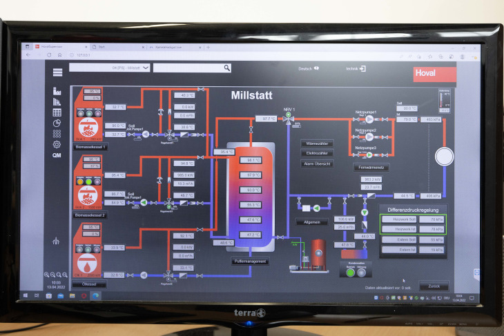Klimaaktiv, eine Initiative des Bundesministeriums für Klimaschutz, Umwelt, Energie, Mobilität, Innovation und Technologie, würdigte das Vorzeigeprojekt mit einer Auszeichnung. Denn im gesamten Betrieb ist der Fokus auf verantwortungsvollen Umgang mit Ressourcen gerichtet: Eine spezielle Form der Wärmerückgewinnung nutzt die entstehenden Rauchgase, wodurch der Hackschnitzelbedarf um 20 % sinkt. Die niedrige Rücklauftemperatur von 45 Grad sorgt für einen effizienten Betrieb, während die gedämmten Fernwärmeleitungen den Wärmeverlust konstant unter 10 % halten. Im Zusammenspiel mit den Komponenten von Hoval entsteht eine leistungsfähige Lösung für Millstatt: Im Einsatz sind das Puffermanagement, die Netzregelung, die Fernwärme-Übergabestationen mit Sonderwärmetauscher sowie das Speicherladesystem. Über die Leittechnik HovalSupervisor erfolgt die Steuerung und laufende Optimierung.
