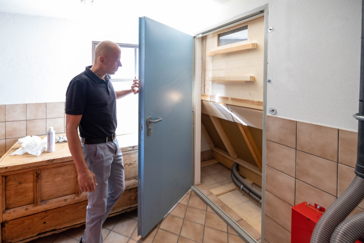 Wo früher die Öltanks standen, befindet sich nun das selbstgebaute Pelletlager.