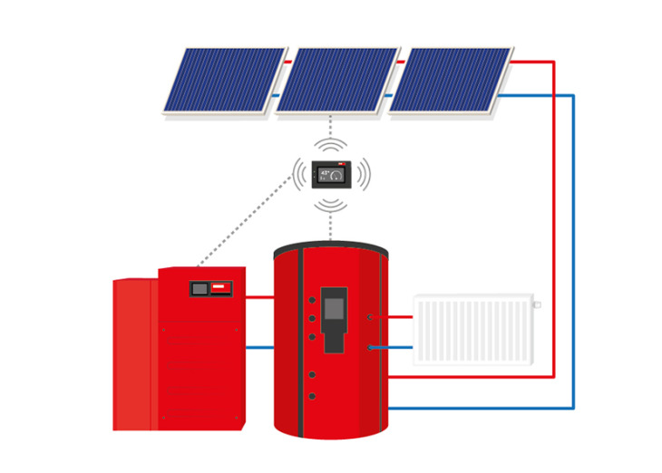 Eine Solaranlage ergänzt die Lösung aus Pelletheizung und Pufferspeicher perfekt und hilft, Heizkosten zu sparen. Im Winter spielt der Pelletkessel seine Vorzüge aus, im Sommer hat er Schonzeit. Das Warmwasser kommt dann von der Sonne.