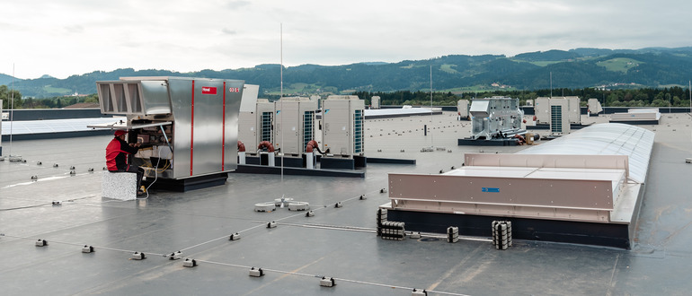 Das Hoval-System passt sich nicht nur individuellen Anforderungen an, sondern ist trotz neuen Verordnungen immer zukunftssicher. Dies gilt auch bei der F-Gase-Verordnung: Diese regelt den Umgang mit fluorierten Treibhausgasen (F-Gasen) in Österreich. Ziel ist es, die Emissionen aus Geräten und Anlagen zu verringern. Zu diesen Geräten zählen vor allem auch Klimaanlagen und Wärmepumpen. Mit der neuen Verordnung dürfen Wärmepumpen mit einem Kältemittel, das einen GWP-Wert (Global Warming Potential) von 750 oder mehr aufweist ab 2025 nicht mehr verkauft werden. Eine Ausnahme gibt es für das häufig verwendete Kältemittel R410A. Obwohl es kein natürliches Kältemittel ist, darf es im für Gewerbebauten notwendigen hohen Leistungsbereich und vor allem auch in Kombination mit den TopVent- oder RoofVent-Geräten noch bis 2029 eingebaut werden. Danach sind der Betrieb und das Service für vorhandene Anlagen mit R410A zeitlich unbegrenzt möglich. Damit gelingt auch weiterhin ein leistungsstarkes und zukunftssicheres Hallenklimasystem.