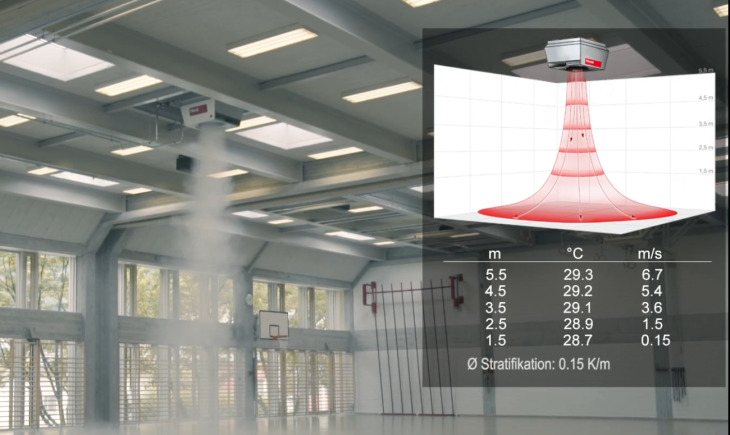 Der Air-Injector sorgt für eine optimale Lufteinbringung und -verteilung angepasst an die Anforderungen der Hallennutzung – und das ohne spürbaren Luftzug.