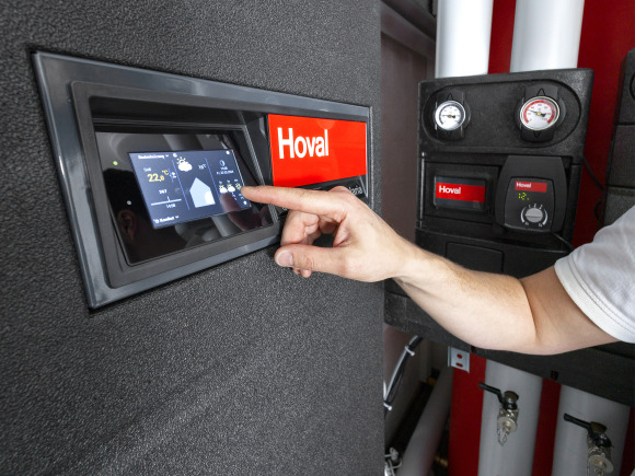 Ist die smarte Regelung an den Router des Heimnetzwerkes angebunden, holt sie sich alle drei Stunden die ortsgenauen online Echtzeit-Wetterdaten und stimmt den Heizbetrieb darauf ab. Dieser vorausschauende, witterungsgeführte Heizungsregler kann den zu erwartenden Ertrag der Solaranlage berücksichtigen, um besonders energiesparend die gewünschten Temperaturen zu erzielen. Mit dem intuitiven Touchscreen lassen sich Raumklima, Warmwasser und Co. einfach überblicken und steuern. Der Online-Dienst HovalConnect ermöglicht den Zugriff auch jederzeit außer Haus via Smartphone-App.