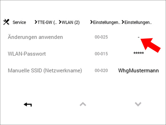 Prüfen Sie ob in der Zeile "Änderungen anwenden" rechts die Bezeichnung "Anwenden" angezeigt wird. Klicken Sie nun abschliessend links unten 6x auf die "Zurück" Taste, um auf den Home-Bildschirm zurückzukehren.