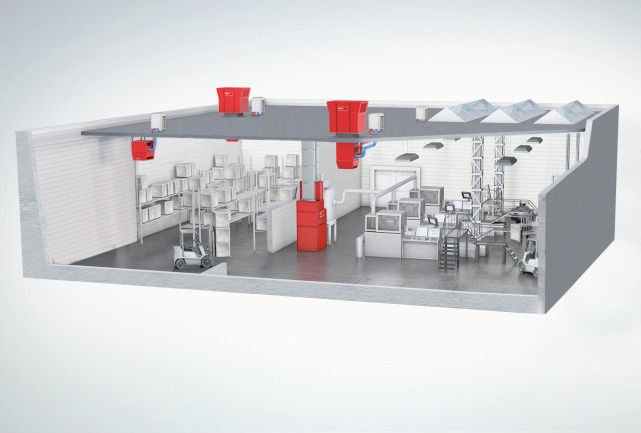 Be- und Entlüftungsgeräte | Kompaktgeräte zum Lüften, Heizen und Kühlen von Produktionshallen mit Wärmerückgewinnung aus Prozessabluft.
